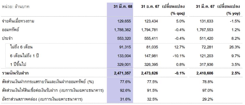 ตัวอย่างข้อมูล CASA (Q1/2025) ลองดู SCB เป็นตัวอย่างแรกครับ